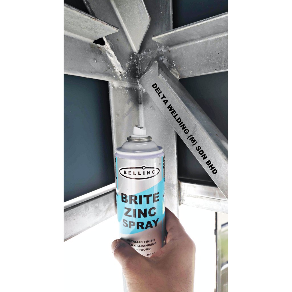 BELLING BRITE ZINC SPRAY is a unique high-solid-content compound used for the cold galvanising of steel to provide long term protection indoors and outdoors. It contains a blend of zinc and resin in a solvent carrier. Upon drying the resulting film adheres strongly to the metal substrate and acts as the sacrificial component to prevent the formation of iron oxide. BELLING BRITE ZINC SPRAY dries into a fine, high-adhesion film giving it a metallic, attractive finish. The metallic appearance more closely resembles the original colour of steel and hot dip galvanising compared to traditional zinc rich primers.