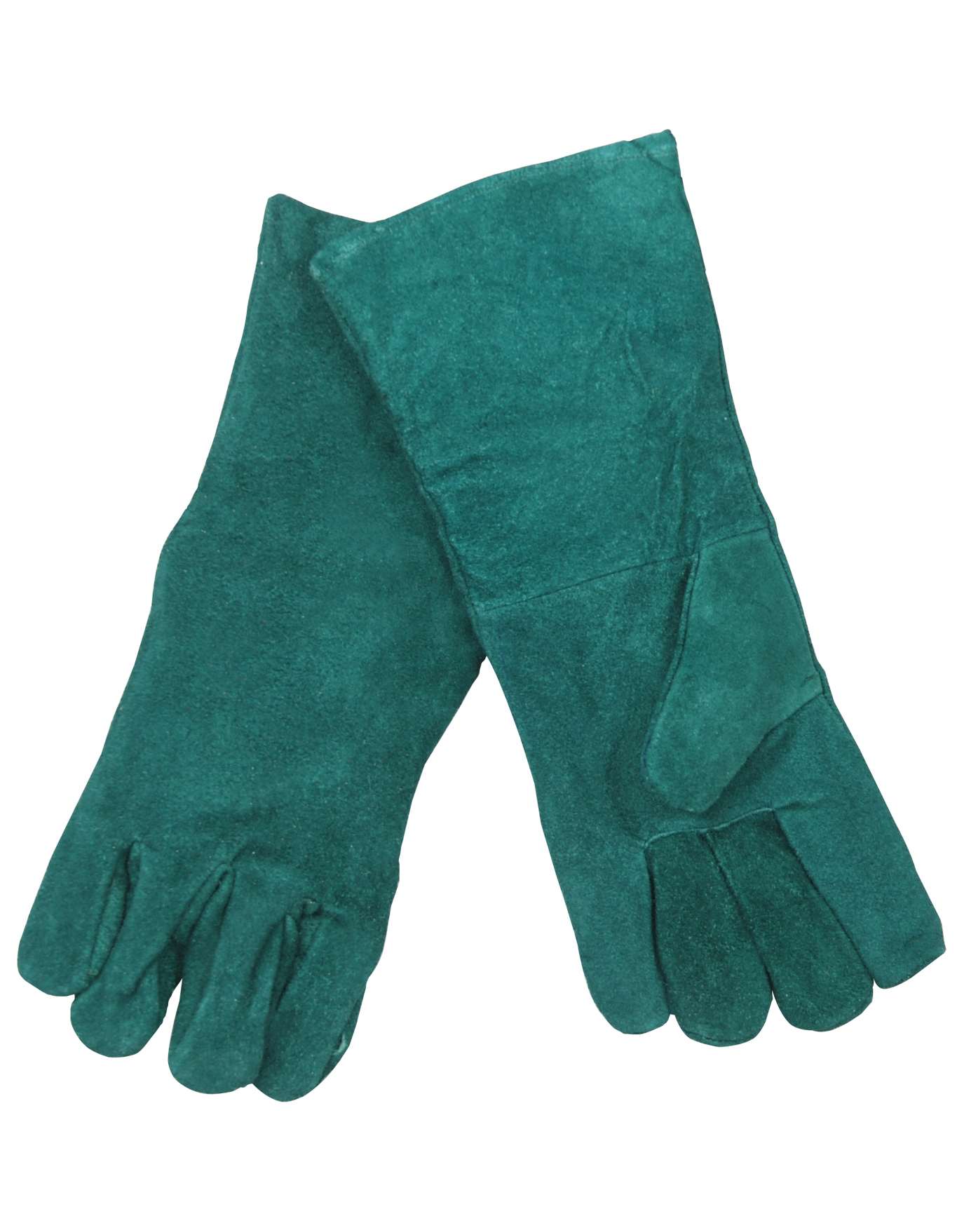 Green welding gloves typically feature a long cuff that extends up the forearm to provide additional protection.